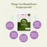 - Made from the leaves of the Arappu plant, this powder is known for its ability to cleanse hair without stripping it of natural oils.